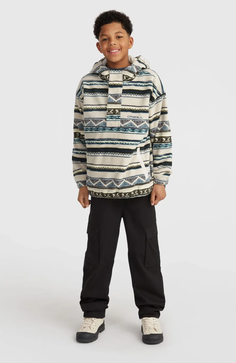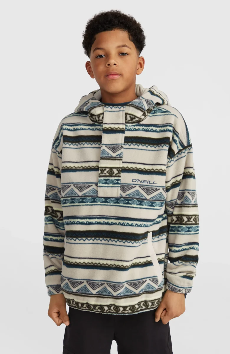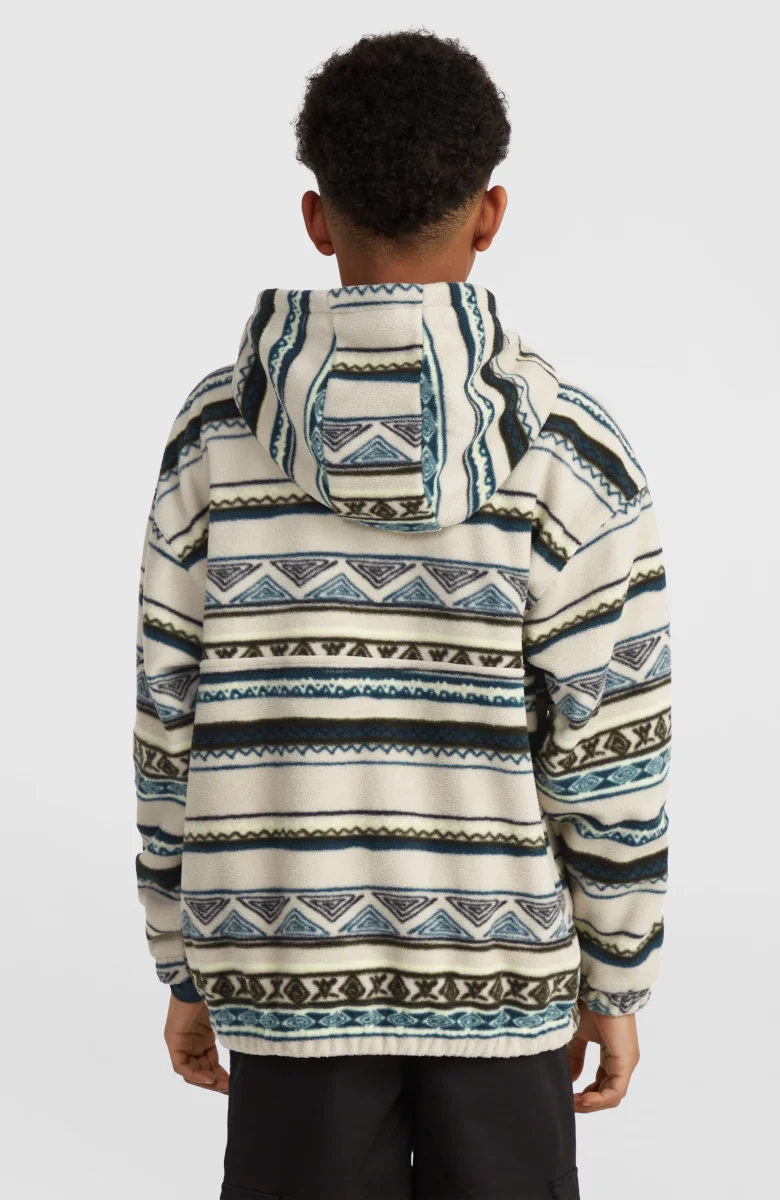 Sweat à capuche et col demi-zip Superfleece | Grey Ikat Stripe