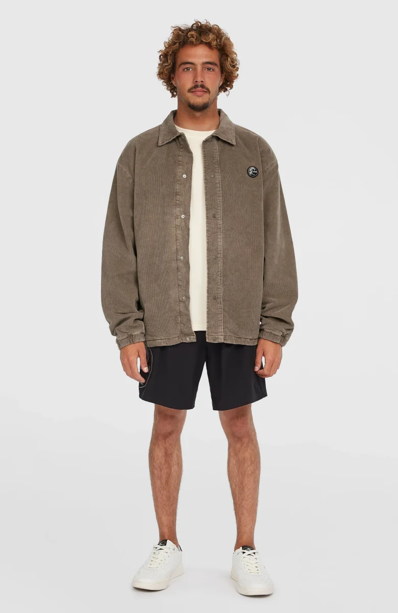 Dotée d’une silhouette classique, la veste Cord Coach offre une protection légère pour les soirées d’été. Confectionnée en velours côtelé de coton, cette veste présente un col rabattu, des coutures d’épaules avancées et une coupe classique qui s’ajuste parfaitement. Le logo brodé au dos rend hommage au style décontracté emblématique d’O’Neill. Ce modèle est complété par des poignets élastiqués, une fermeture par bouton-pression et des poches latérales.